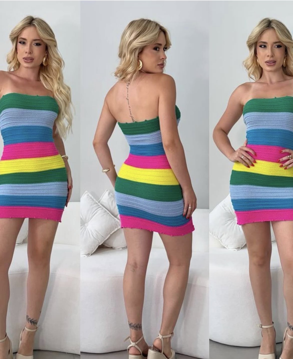 Colorido, moderno e cheio de estilo! Confeccionado em modal, ele oferece toque macio, caimento perfeito e muito conforto. As listras vibrantes deixam o look atual e cheio de personalidade — ideal para quem ama estar super em alta sem abrir mão do bem-estar. 💖🌈